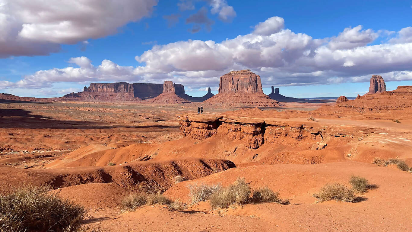 Wake up in Chinle, a town encompassed within Navajo Nation, the largest Native American reservation in the United States. Set off to explore Canyon de Chelly National Monument, where dramatic canyon walls and red sandstone cliffs frame a current-day community of Navajo families and the remains of ancient cliff dwellings. Embark on a guided Jeep tour led by a local Navajo guide, taking in the canyon that has been continuously inhabited for over 5,000 years as your guide shares Navajo history and stories. This afternoon, continue your journey through Navajo Nation as you make your way to Monument Valley, another beautiful desert landscape with deep cultural, spiritual, and historical importance.